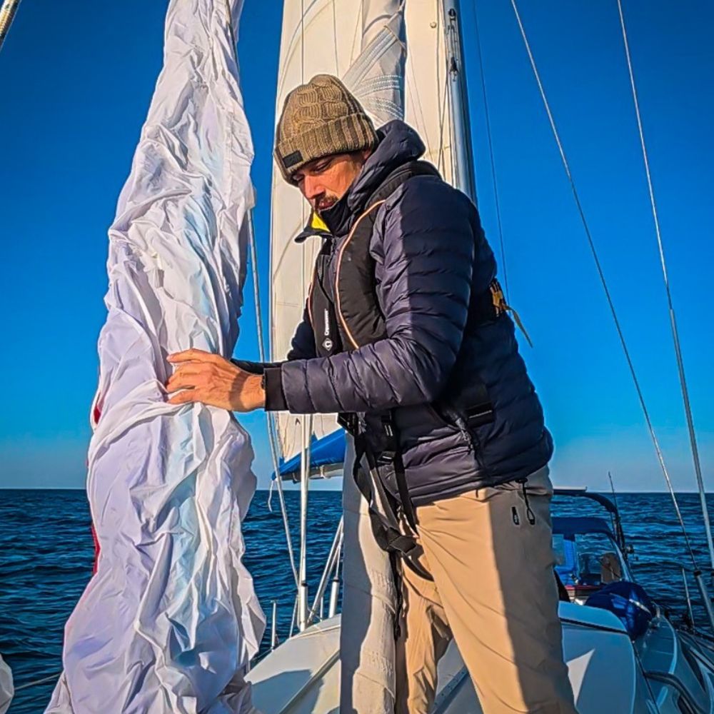 We also added a furler for our staysail so we don’t have to go out onto the foredeck to use it, reducing the amount of time we have to spend outside the cockpit was a safety concern with the colder waters meaning falling over the side would be more severe than in the tropics. We also upgraded our lifejackets to 290 newton capacity so that they are sure to turn us over onto our backs if we do fall in, that can be a problem with the smaller life jackets when wearing lots of layers which are designed to trap warm air.