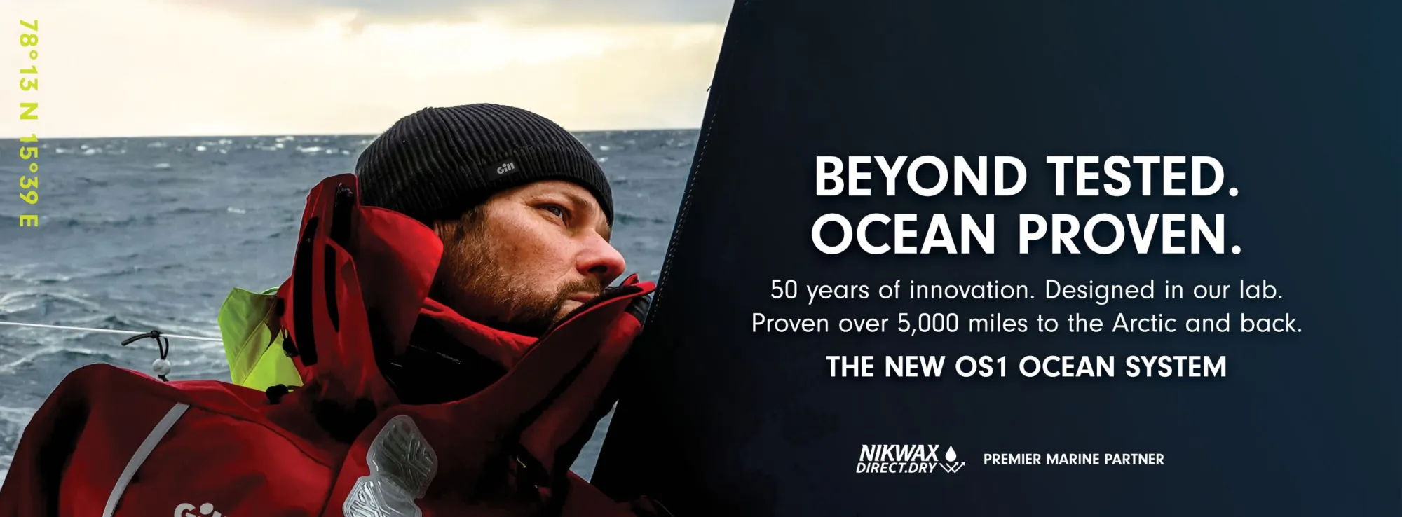 In a marine-industry first, we’ve partnered with Nikwax to debut Direct.Dry – a breakthrough, PFAS-free DWR treatment. This factory-applied technology gives the OS1 a relentless 95 – 100 spray rating for industry-leading protection in extreme conditions. Long-lasting and easily renewable, it ensures you stay dry while making a more responsible choice for our oceans.